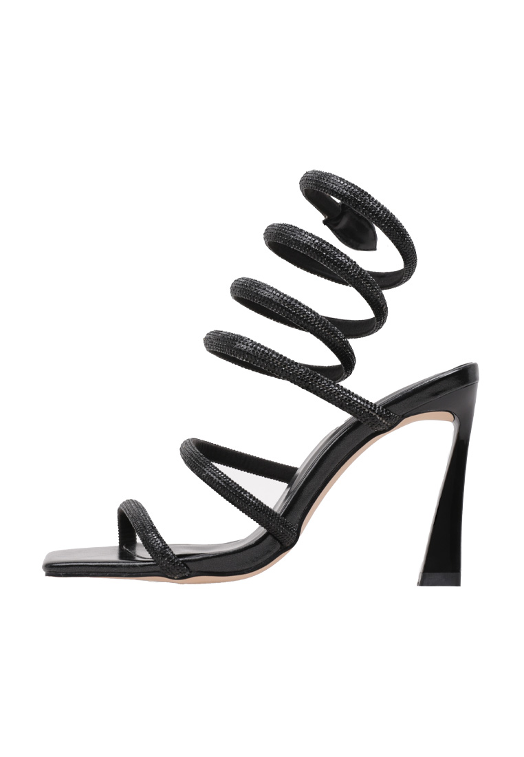 Por último, Dulceida ha querido incorporar unas sandalias espiral a esta colección. Las mismas no solo serán perfectas para los looks de las fiestas navideñas, sino que son toda una joya que atesorar de cara al próximo verano. Estas sandalias destacan por su estructura en forma de espiral y por contar con detalles de brillos. Están disponibles en tres colores: verde lima, negro y plata.